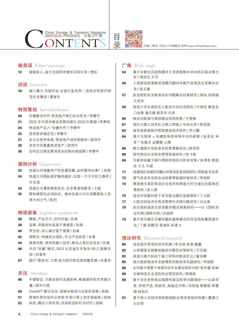 《中国储运》2023年04月 总第271期