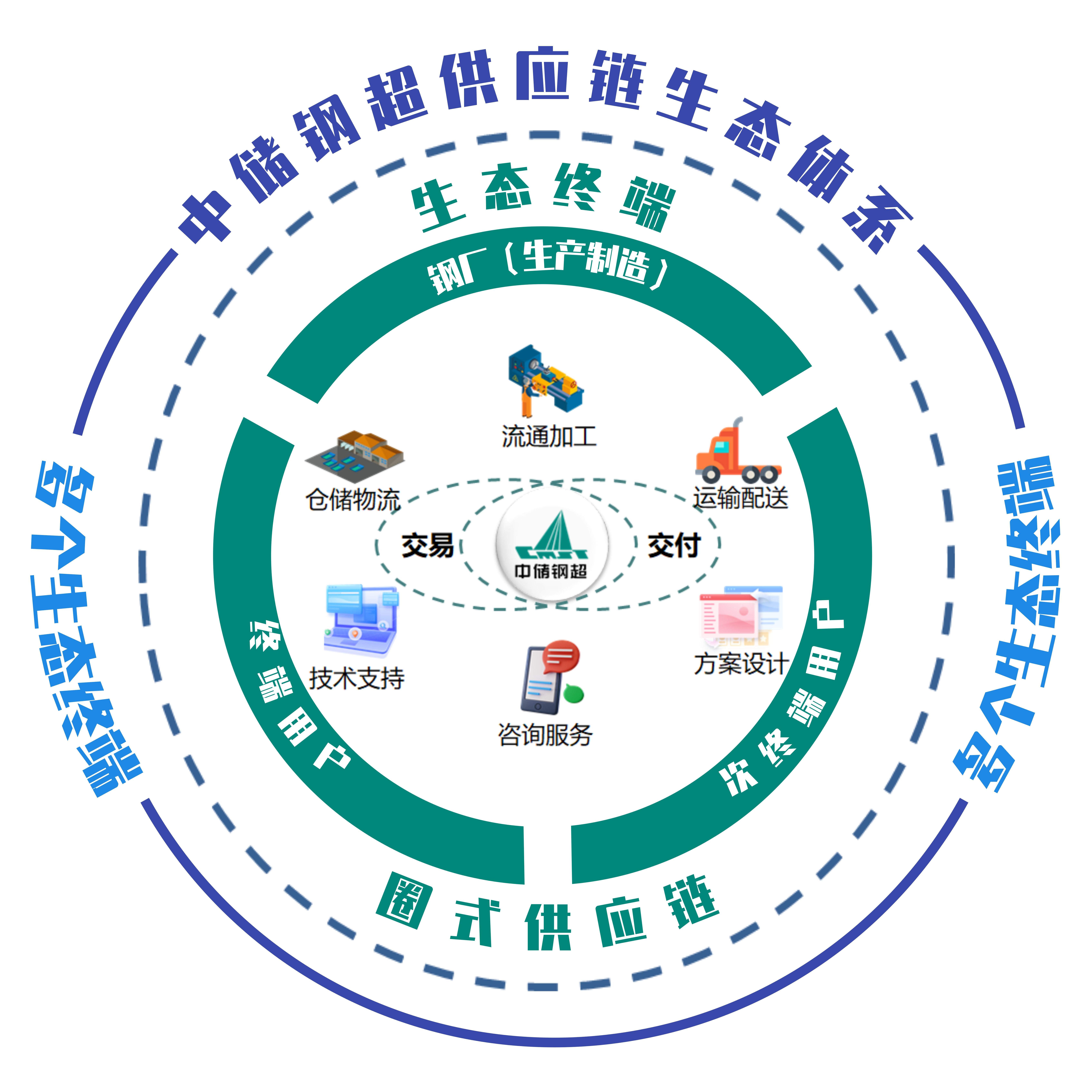 中储构建供应链物流、供应链金融、供应链生态三层结构的大宗商品供应链服务平台,具备物流、贸易、金融多种功能,能够为大宗商品产业链各方提供充分整合、互利共赢的供应链生态环境。